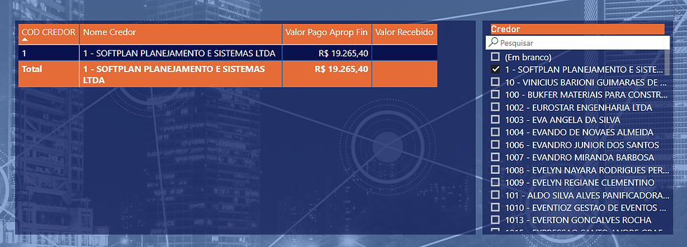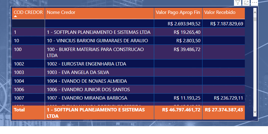 Perceba que rapidamente temos sumarizados os valores pagos e recebidos por nome de credor.